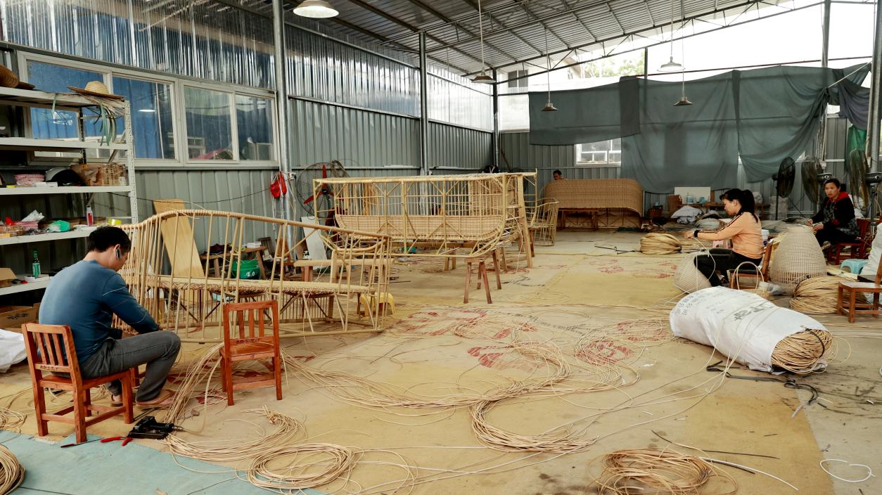 正在进行藤编的手艺人